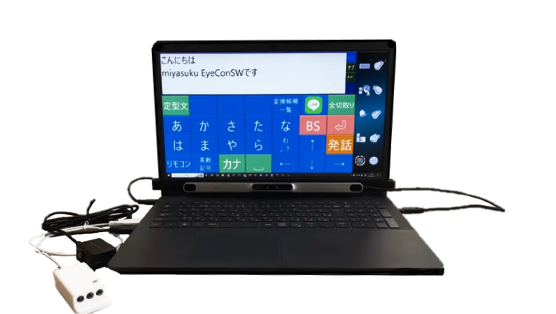 ALS・SMA・筋ジストロフィー等の重度身体障害者が、視線やスイッチを活用してパソコンを操作し、日常会話や勉強・仕事を行う等、QOL向上を実現する装置です。