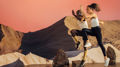 高揚する音楽に合わせ、調整可能なステップ台を使った、シンプルでアスレティックなステップエクササイズです。